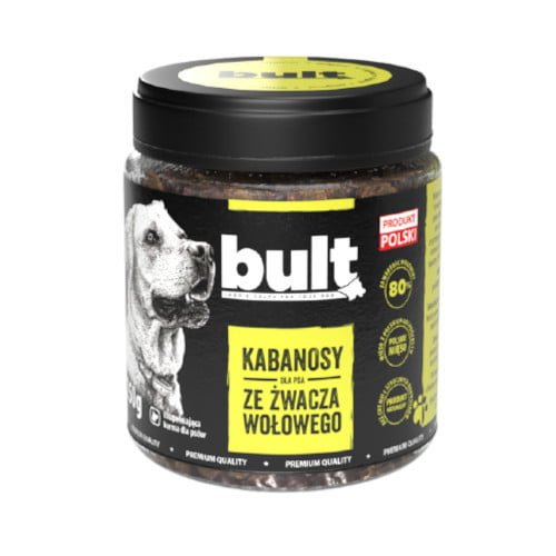 ein leckerer Bissen getrocknetes Rindfleisch Was ist ein Pansen? Wir könnten eine lebhafte Diskussion über Pansen führen. Aber wir machen es lieber kurz: Unsere Pansen-Kabanosy aus Rindfleisch werden jeden Kau-Fan begeistern. Und natürlich mit wedelndem Schwanz! Pansen-Kabanosy. Ein HIT unter den Hundesnacks, den es sonst nirgendwo gibt! Bult Pansen kabanosy ist ein Snack, den Hunde aller Art lieben werden. Die getrockneten Fleischhäppchen aus 100% hochwertigem Rindfleisch von polnischen Bauernhöfen regen den Appetit Ihrer Lieblinge an. Ihr Hund wird mehr, mehr und… noch mehr wollen. Deshalb raten wir Ihnen, sich mit getrocknetem Rinderpansen in Form von Kabanos in großen Mengen einzudecken – je mehr, desto besser. Warum ist Pansen-Kabanos das Beste? Aromatischer Pansen-Kabanos für Hunde ist nicht nur irgendein Snack. Es ist eine Kostprobe, die sich perfekt für das Training, als Belohnung oder als Anreiz zum Fressen eignet. Keine Hundenase kann diesen Aromen widerstehen, denn sie verkünden nur eines: Köstlichkeit. Aber Rinderpansen-Kabanos sind nicht nur einfach lecker, sondern auch eine gesunde Ergänzung der Grundnahrung Ihres Hundes. Sie unterstützen die Verdauung und den Aufbau der Darmflora und befriedigen vor allem das Kau- und Beißbedürfnis. DAS MÜSSEN SIE WISSEN! bult Hundekauartikel werden in Handarbeit hergestellt. Wir trocknen sie so, dass der Einsatz von chemischen Konservierungsstoffen auf Null reduziert wird. Das ist aber noch nicht alles! Jedes Pansenkraut, das unsere Produktionslinien verlässt, muss strenge Normen erfüllen. Wir legen sie selbst fest, denn für uns gibt es nichts Wichtigeres als Qualität. ZUSAMMENSETZUNG Rinderpansen 80% Pflanzliche Produkte 20% ANALYTISCHE ZUSAMMENSETZUNG Rohprotein – 44,3% Rohfett – 31,1% Rohfaser – 12,1% Feuchtigkeit – 5,2% Rohasche – 4,7%