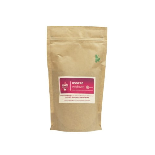 Ecome sprühgetrocknetes Rinderplasma ist eine Quelle für hochwertiges tierisches Eiweiß, das von Rindern gewonnen wird. Es wird nur von Tieren gewonnen, die für den menschlichen Verzehr geeignet sind (Human Grade) und von Schlachthöfen unter ständiger tierärztlicher Aufsicht geliefert. Es enthält keine Zusätze oder Füllstoffe. Ergänzungsfuttermittel für Hunde und Katzen. Unser Produkt wird als Nahrungsergänzungsmittel für Heimtiere und Pelztiere verwendet, da es eine Quelle perfekt verdaulicher Proteine mit biofunktionalen Eigenschaften ist, die IgG (Immunglobuline), Glykoproteine und Mineralien enthalten, die die natürliche Immunität des Körpers stimulieren und verstärken und eine gute Darmfunktion beeinflussen, das Auftreten von Entzündungen verringern, schlechte Bakterien binden und deren Ausscheidung über den Kot ermöglichen. Darüber hinaus wird Plasma in der Lebensmittelindustrie als wasserbindende und emulgierende Zutat verwendet. Ekome-Rinderplasma wird in Übereinstimmung mit den EU-Richtlinien hergestellt: EG 1069/2009 und EG 142/2011. eignet sich hervorragend als Zusatz zu einer BARF/RAW-Fütterung. Kann Teil des täglichen Futters sein, auch in Kombination mit Ekome getrocknetem Rinderhämoglobin. Getrocknetes Rinderplasma von Ekome wird besonders empfohlen: für Jungtiere während der intensiven Wachstumsphase (es ist ein natürlicher Wachstumsstimulator), für Rekonvaleszenten nach Operationen, für Senioren, wenn eine Anämie festgestellt wird, während der Entwöhnung von Jungtieren, bei Änderung der Zusammensetzung oder der Art der Ernährung, bei Durchfall und Darmproblemen. Die Formel ist reich an natürlichem, hochverdaulichem Lysin: unentbehrlich für die Bildung von Proteinen, vor allem in Muskeln und Knochen, die Kalziumaufnahme, die Verbesserung der geistigen Konzentration, die Linderung von Erkältungs-, Grippe- und Herpes-Symptomen, beteiligt an der Produktion von Hormonen, Antikörpern, Enzymen und an der Bildung von Kollagen, sein Mangel führt zu Symptomen von Müdigkeit und Reizbarkeit, verursacht Blutarmut und Haarausfall, hat in Kombination mit hohen Dosen von Antioxidantien wahrscheinlich eine starke krebshemmende Wirkung, ist an der Gewebeerneuerung, der Bildung von Antikörpern, der Stimulierung des Wachstums sowie der Hormon- und Enzymproduktion beteiligt. und Threonin: verantwortlich für die richtige Hydratation der Haut, beteiligt an der Produktion von Elastin und Kollagen, stärkt die Blutstillung des Nervensystems, ermöglicht eine effizientere Übertragung von Nerveninformationen zwischen den Neuronen, was die Arbeit des Zentralnervensystems deutlich normalisiert und die Auswirkungen von geistiger Ermüdung deutlich verringert, stärkt den Zahnschmelz, reguliert den Transport der Nahrung im Verdauungssystem, regt das Immunsystem zur Produktion von Antikörpern an, verbessert die Aufnahme von Nährstoffen aus der Nahrung, sorgt für einen korrekten Metabolismus von Fettverbindungen in der Leber, normalisiert die Funktion der Schilddrüse. Es kann Teil der täglichen Ernährung sein, auch in Kombination mit Beef Haemoglobin Ekome. Unsere Produkte werden nach den höchsten Standards, die für Lebensmittel erforderlich sind, hergestellt und verpackt. Verpackungsart: vollständig biologisch abbaubare Verpackungen aus nachwachsenden Rohstoffen – BIO. Biologisch abbaubares Material ist durch die Wirkung von Mikroorganismen im Boden vollständig biologisch abbaubar, ohne negative Auswirkungen auf die Umwelt. Eine Form der biologischen Abbaubarkeit ist die Kompostierbarkeit, d. h. die biologische Abbaubarkeit der Verpackung in industriellen oder häuslichen Kompostieranlagen. Die Sorge um die Umwelt ist Teil der Strategie von Ekome. Zusammensetzung: 100% getrocknetes Rinderplasma. Spezifikation: Garantierte Parameter Durchschnittswert Prüfmethode (*) Rohprotein > 700 g/kg ISO 5983:2005 Feuchtigkeit ≤ 80 g/kg ISO 6496:1999 Enterobacteriaceae 5 Proben < 300 KBE/g, davon 3 < 10 KBE/g ISO 21528-2:2004 Salomenella in 25 g Probe nicht vorhanden ISO 6579:2002 Chemische Analyse Rohprotein (Nx6.25) 720 g/kg ISO 5983:2005 Rohfett (säurehydrolysiert) 25 g/kg ISO 6492:1999 Rohasche (550 ºC) 190 g/kg ISO 5984:2003 Feuchte 70 g/kg ISO 6496:1999 Citrat 20 g/kg Interne Methode Mineralstoffe Calcium 0,1 g/kg Interne Methode Magnesium 0,8 g/kg Interne Methode Phosphor 0,1 g/kg Interne Methode Kalium 2,0 g/kg Interne Methode Natrium 59,5 g/kg Interne Methode Physikalische Eigenschaften Wasseraufnahme ≥ 400 g/cm2 Löslichkeit ≥ 90 % Interne Methode pH 7 – 11 Interne Methode Volumendichte 400-500 g/m3 Interne Methode Aussehen Gelblich/weißes Pulver Visuelle Beurteilung Proteinqualität Pepsinverdaulichkeit HCL 99% ISO 6655:1997 (*) Testmethode in einem nach ISO 17025 akkreditierten Labor. Analyse der Aminosäuren: Aminosäure g/kg Alanin 39,7 Arginin 44,5 Asparaginsäure 82,0 Cystein 27,3 Glutamin 108,0 Glycin 27,3 Histidin 24,9 Isoleucin 23,1 Leucin 76,2 Lysin 74,0 Methionin 8,9 Phenylalanin 41,1 Prolin 41,5 Serin 51,5 Threonin 51,8 Tyrosin 37,5 Valin 55,1 Individuelle Dosierung oder gemäß den Richtlinien in den nachfolgenden Tabellen. Dosierung Hunde: Körpergewicht in kg minimale Grammzahl pro Tag maximale Grammzahl pro Tag 1-5 kg 1-3 2-10 6-25 kg 5-10 10-20 26-40 kg 10-15 20-30 41-60 kg 15-20 30-40 Dosierung Katzen: Körpergewicht in kg Grammzahl pro Tag 4-6 kg 4-6 7-15 kg 5-10 Hinweis: Um vollständiges Blut zu erhalten, mischen Sie Hämoglobin mit getrocknetem Plasma in einem Verhältnis von 4 : 1 (4 Portionen Hämoglobin, 1 Portion Plasma). Deckung für einen Hund Hämoglobin 4 g Plasma 1 g gemäß dem empfohlenen Verhältnis: Chemische Analyse Verbrauch pro kg Körpergewicht 4:1 % Deckung Rohprotein (Nx6,25) 4,95 4,40 89% Rohfett (hydrolysierte Säure) 1,51 0,03 2% Mineralstoffe 0,00 Calcium 0,138 0,00 0% Magnesium 0,020 0.00 6% Phosphor 0.110 0.00 3% Kalium 0.138 0.01 7% Natrium 0.028 0.10 362% Eisen 0.001 0.00 302% Aminosäure A
