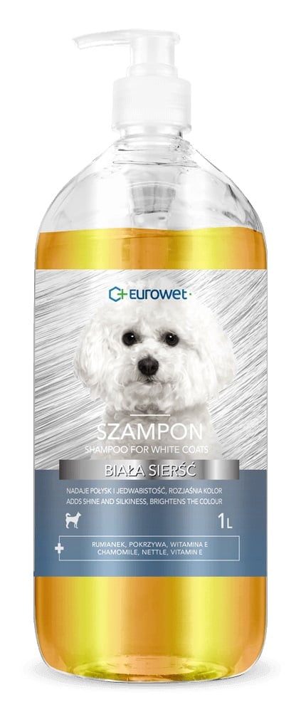EUROWET Shampoo für weißes Fell 1 Liter ist ein spezielles Pflegemittel für die Reinigung und Pflege des weißen Fells von Hunden. Es enthält Inhaltsstoffe, die das Fell und die Haut nicht nur gründlich reinigen, sondern es auch glänzend und seidig machen. Dank Kamille, Brennnessel und Vitamin E unterstreicht das Shampoo die natürliche Farbe des Fells, hellt es auf und sorgt für ein gesundes Aussehen. EUROWET Shampoo für weißes Fell 1 Liter ist leicht auszuspülen und erleichtert das Kämmen, so dass das Fell weich und glänzend bleibt. Darüber hinaus helfen natürliche pflanzliche Inhaltsstoffe, Haarausfall und Schuppenbildung zu reduzieren.