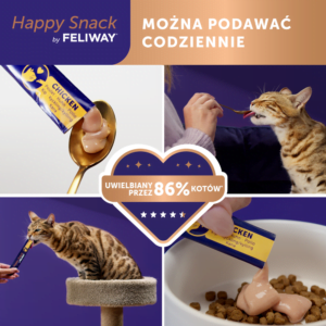 FELIWAY Happy Snack ist ein Produkt zur emotionalen Unterstützung von Katzen in jeder Lebensphase. Der Snack mit dem köstlichen Geschmack von Huhn und dem Wirkstoff Alpha-Casozepin hilft Katzen, in stressigen Situationen ruhig und emotional ausgeglichen zu bleiben. Er eignet sich perfekt für die Einführung einer täglichen Entspannungsroutine – er kann sowohl als Leckerbissen allein als auch während der täglichen Fellpflege gegeben werden. Natürliche Zutaten und keine künstlichen Zusatzstoffe machen FELIWAY Happy Snack zu einer sicheren Wahl, die von den meisten Katzen geliebt wird. Unterstützung in schwierigen Zeiten und eine positive Wirkung auf die Stimmung der Katze sind nur einige der Vorteile, die Betreuer, die sich um die psychische Gesundheit ihrer Haustiere kümmern, zu schätzen wissen.