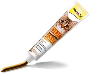 GimCat Anti-Hairball Duo-Paste Malz mit Käse ist ein gesunder Snack für Ihre Katze. Dank ihrer einzigartigen Zusammensetzung unterstützt die Paste das Ausscheiden der aufgenommenen Haare, hilft, die Bildung von Haarklumpen zu reduzieren und beugt Verdauungsproblemen vor. Ohne Zusatz von Zucker, Konservierungsstoffen oder Geschmacksverstärkern. Ergänzungsfuttermittel für Katzen. Zutaten: Pflanzliche Nebenerzeugnisse Malzextrakt (40%), Öle und Fette, Hefe, Milch und Milcherzeugnisse (2% Käse) Zusatzstoffe pro kg: Vitamin E 1500 mg, mit Farbstoff. Analytische Bestandteile: Eiweiß 4,5%, Fettgehalt 37,5%, Rohasche 6%, Rohfaser 2%, Feuchtigkeit 12,0% Fütterungsempfehlung: Täglich 6 cm (1 cm = ca. 0,5 g), vorzugsweise von Hand, direkt aus der Tube füttern. Kann auch dem Futter beigemischt werden. Die Menge kann bei Bedarf auch verdoppelt werden. Fütterung bei Raumtemperatur.