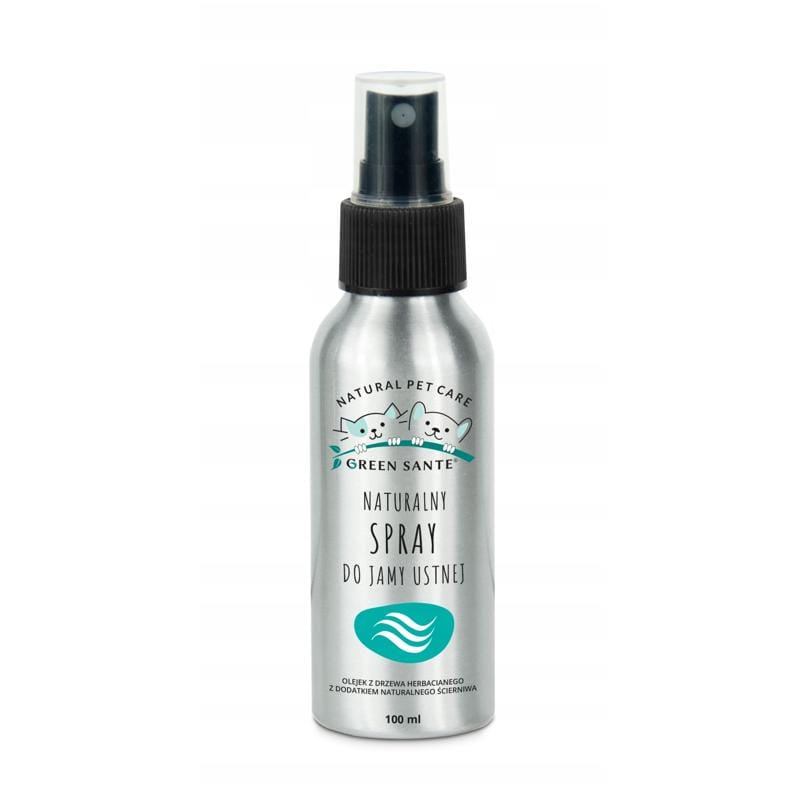 GREEN SANTE® NATURAL Oral SPRAY für Hunde und Katzen ist eine Lösung für die tägliche Pflege der Zähne und des Zahnfleisches Ihres Haustieres. Das natürliche Schleifmittel in Form von Kieselerde, das in dem Produkt verwendet wird, reinigt effektiv die Oberfläche der Zähne und macht sie weißer. Das Spray enthält: Teebaumöl, Lavendelöl und Pfefferminzöl: Durch ihre reinigenden, antibakteriellen, antiviralen und antimykotischen Eigenschaften hemmen sie die Bildung von Plaque und Zahnstein und reduzieren die Entstehung von Entzündungen in der Mundhöhle. Lavendelöl lindert zusätzlich Reizungen, Juckreiz und Brennen, Pfefferminzöl erfrischt den Atem. Die tägliche Anwendung hilft, die Bildung von Plaque zu reduzieren, schützt das Zahnfleisch und fördert dessen Regeneration und lindert unangenehmen Mundgeruch. Wann ist es zu verwenden? Unangenehmer Mundgeruch. Reduktion von Zahnstein und Plaque. Schutz vor Infektionen. Enthält keine künstlichen Farbstoffe, Silikone, Parabene, Mineralöle oder PEG/PPG. ANWENDUNG: Reinigen Sie die Zähne, das Zahnfleisch und die Zunge Ihres Haustieres vor der Anwendung sanft, damit das Spray besser wirken kann. Halten Sie das Spray ca. 5 cm vom Mund entfernt und tragen Sie 4 Sprühstöße des Produkts auf Zähne, Zahnfleisch und Zunge auf. Verteilen Sie das Spray sanft und achten Sie darauf, dass es alle genannten Bereiche gründlich bedeckt, um eine vollständige Hygiene und Erfrischung zu gewährleisten. Spülen Sie das Produkt nach der Anwendung nicht ab, damit die Wirkstoffe wirken und das Maul Ihres Tieres schützen können. Wenden Sie das Spray nach jeder Fütterung Ihres Haustieres an.