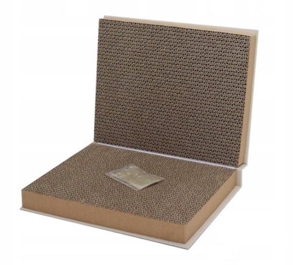 Hilton Cat Scratchers With Catnip Cardboard Scratch Book Katzenkratzer sind ein unverzichtbares Utensil für jedes Heim mit einem pelzigen Haustier. Der Hilton Katzenkratzer ist aus mehrschichtigem, strapazierfähigem Karton gefertigt. Das geringe Gewicht ermöglicht es, den Kratzbaum überallhin mitzunehmen. Die stabile und verschleißfeste Struktur ermöglicht es der Katze, ihre Krallen zu schärfen und zu pflegen. Der Kratzer befriedigt das natürliche Bedürfnis des Zupfens, das für die Gesundheit und das Wohlbefinden der Katze sehr wichtig ist, und schützt gleichzeitig die Haushaltsmöbel vor Beschädigungen. Dank des Kratzers wird die Katze viele Stunden lang unterhalten, und die im Set enthaltene Katzenminze steigert den Spieltrieb. Es ist eine perfekte Lösung sowohl für Kätzchen als auch für erwachsene Katzen. Das Material ist zu 100% recycelbar. ABMESSUNGEN: 28,2 x 22,3 x 6,5 cm ABMESSUNGEN NACH DEM ÖFFNEN: 28,2 x 44,5 x 3 cm