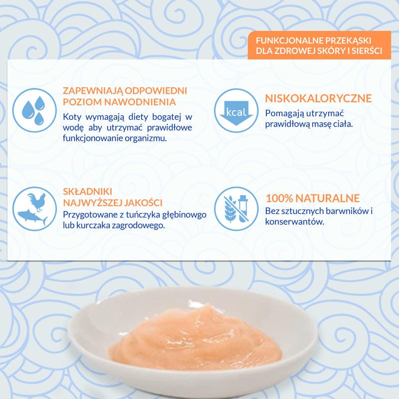INABA CAT Churu Skin and Coat chicken sind Leckerbissen, die nicht nur schmackhaft sind, sondern auch viele gesundheitliche Vorteile für Ihre Katze bieten. Dank sorgfältig ausgewählter Zutaten wie Hühnerfleisch aus Freilandhaltung und Thunfisch aus nachhaltigem Fang bieten sie eine hohe Qualität und einen Geschmack, der selbst die wählerischsten Haustiere zufrieden stellt. Der niedrige Kaloriengehalt und der Verzicht auf Getreide, Konservierungsstoffe und künstliche Farbstoffe machen sie zur idealen Wahl für Katzen mit einem empfindlichen Verdauungssystem. Churu Skin and Coat ist eine großartige Möglichkeit, die Ernährung Ihrer Katze zu verbessern und auch die Bindung durch Handfütterung zu stärken.