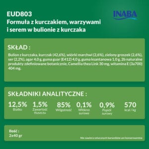 INABA DOG Twin Huhn-Gemüse-Käse ist ein Ergänzungsfuttermittel für Hunde, das aus natürlichen Zutaten wie Huhn, Gemüse und Käse besteht. Das Futter ist in eine schmackhafte Hühnerbrühe getaucht und versorgt Ihren Hund mit wertvollen Proteinen, Vitaminen und Mineralien zur Unterstützung der allgemeinen Kondition, des Verdauungssystems und der Muskelentwicklung. Der Käse verfeinert den Geschmack zusätzlich und macht es zum perfekten Snack für jeden Hund. Dieses Produkt eignet sich hervorragend als Ergänzung zum Hauptfutter oder als Leckerli für zwischendurch, das nicht nur gut schmeckt, sondern auch die Gesundheit Ihres Hundes unterstützt.