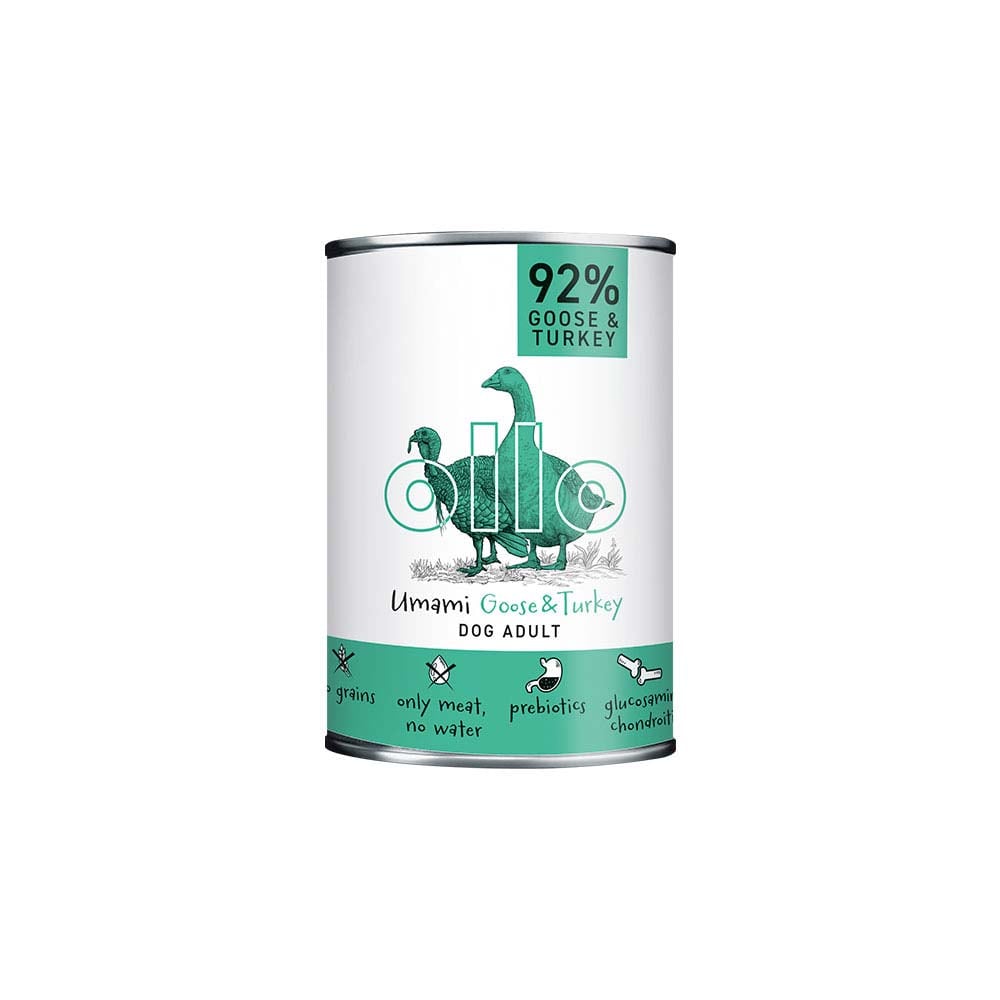 OLLO UMAMI Gans und Truthahn Komplettes Alleinfuttermittel für ausgewachsene Hunde aller Rassen. Ohne Zusatz von Wasser oder Bouillon, um das Fleisch nicht unnötig zu verwässern. Ein nahrhaftes Futter für jeden erwachsenen Hund, insbesondere für Hunde, die aufgrund der erhöhten Energiemenge eine energiereiche Mahlzeit benötigen. Ideal für Hunde mit empfindlichem Verdauungstrakt. Zusätzliche Unterstützung für Gelenke, Fell und Haut sowie für das Verdauungssystem und die Harnwege. Enthält kein Getreide, Gluten und Hülsenfrüchte. Alle Inhaltsstoffe sind natürlich. Sehr reichhaltige Mischung aus Kräutern, Vitaminen und Mineralien, die in anderen Futtersorten nicht enthalten sind.