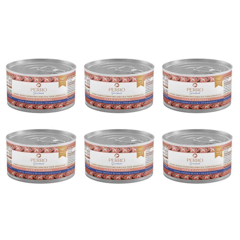 PERRO Gourmet Hirsch mit Zucchini 6x200g – ein vollwertiges Futter zur Unterstützung der Gesundheit von ausgewachsenen Hunden