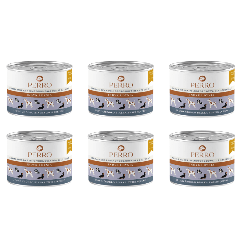 PERRO Truthahn mit Kürbis Junior 6x410g – Ausgewogene Ernährung für junge Hunde aller Rassen