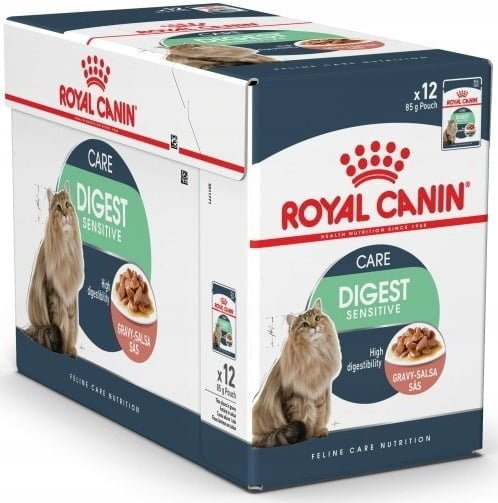ROYAL CANIN Digestive Care Scheiben in Sauce 85g wird besonders für erwachsene Katzen mit Verdauungsproblemen oder einer Tendenz zu abnormaler Kotkonsistenz empfohlen. Dieses Produkt eignet sich perfekt für Katzen mit einem empfindlichen Verdauungssystem, die Unterstützung bei der Aufrechterhaltung eines gesunden Darms und eines guten Allgemeinzustands benötigen. Es ist die ideale Wahl für Katzen über einem Jahr, die eine ausgewogene Ernährung zur Unterstützung einer guten Verdauung benötigen.